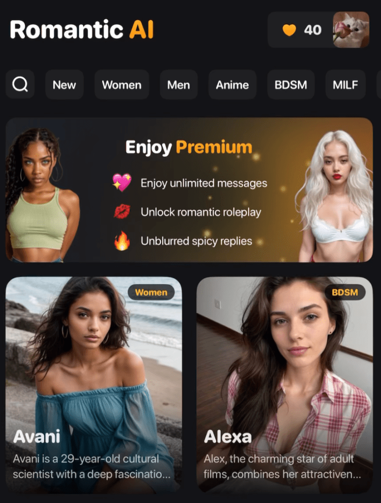 And if that wasn’t wild enough, the app goes full fantasy mode, promising that “if they want to feel like a hero, they’ll be your stunning heroine. “Unlike others, she’s truly dedicated to you,” it adds.