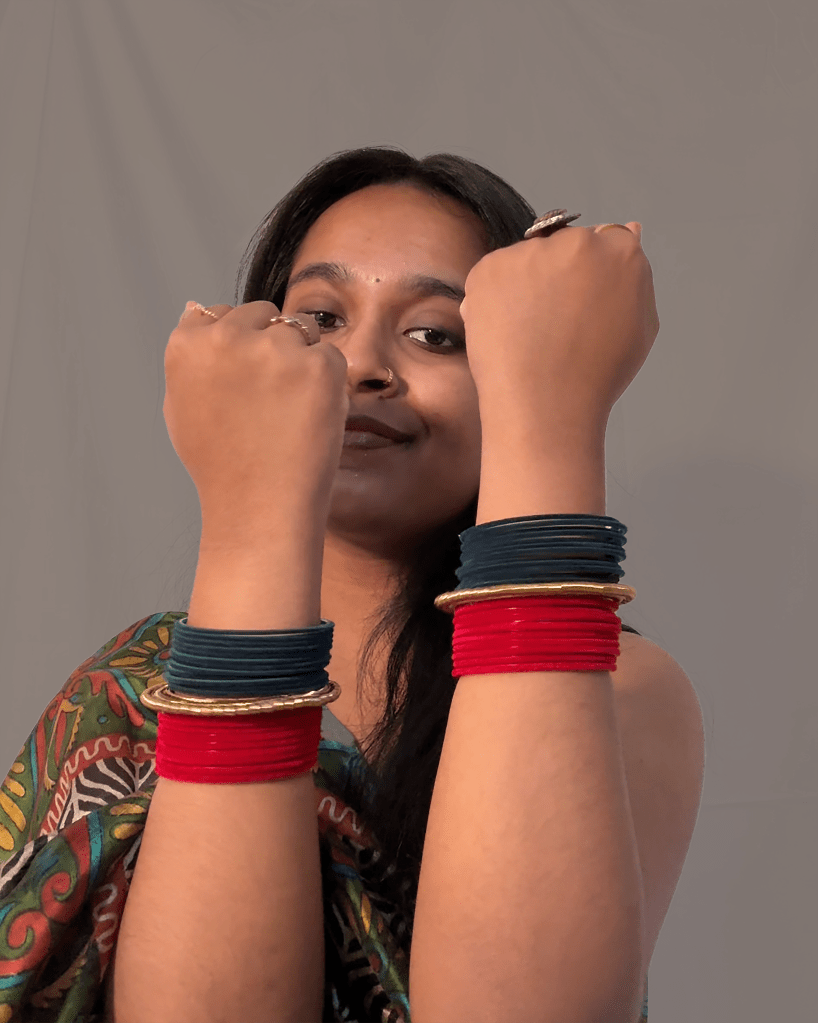 When I was a little girl, every Teejh, Diwali, or Chhath pooja, I’d get ready with mamma. I used to be desperate to wear her gorgeous bangles even when they slipped right off my tiny wrists. She’d always buy me little clip-on earrings because I didn’t have piercings back then. It made me feel grown-up, special—like I was part of something sacred and beautiful.